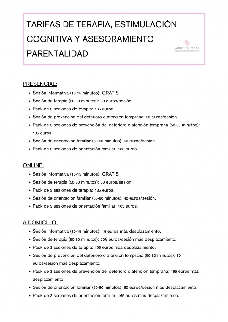 SESIÓN DE ORIENTACIÓN FAMILIAR: 50€/SESIÓN MÁS DESPLAZAMIENTO